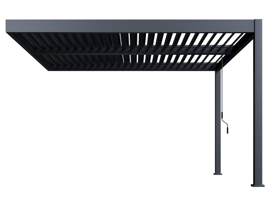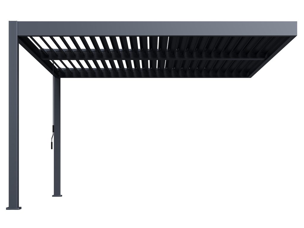 Velmi pevná a stabilní konstrukce v antracitové barvě RAL 7016, v matné povrchové úpravě se hodí do každého prostoru. Pergola je vyrobena z vysoce kvalitního hliníku, který je ošetřen práškovou barvou, což zaručuje odolnost vůči povětrnostním vlivům.