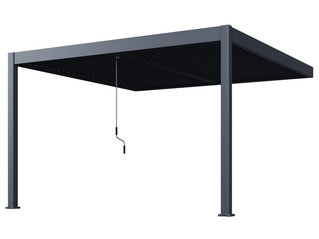 Lamely lze ovládat jednoduše manuálně pomocí kličky. Ta je navržena tak, abyste lamely mohli snadno otočit do požadované polohy a aby při otáčení lamel nedocházelo k poškrábání konstrukce pergoly. Zároveň je klička na konstrukci umístěna tak, aby při doplnění pergoly o zástěny či panely nebránila ve snadné manipulaci s těmito doplňky. Kličku můžete jednoduše sundat.
