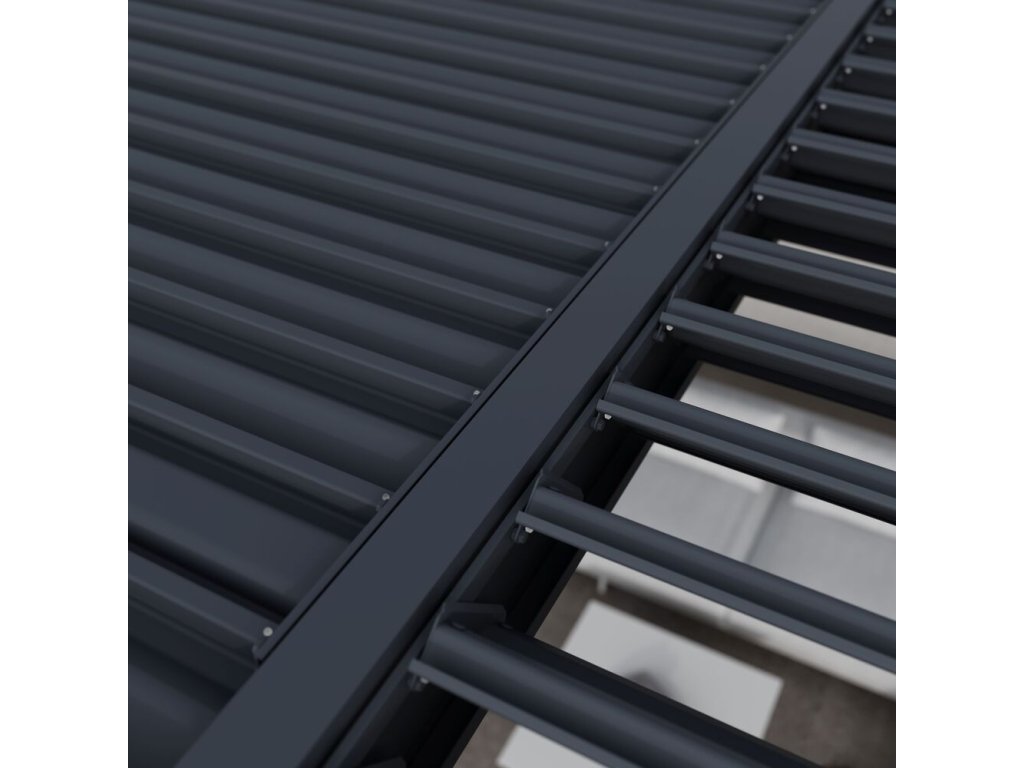 Velmi pevná a stabilní konstrukce v antracitové barvě RAL 7016, v matné povrchové úpravě se hodí do každého prostoru, není zapotřebí vrtat do stěny. Pergola je vyrobena z vysoce kvalitního hliníku, který je ošetřen práškovou barvou, což zaručuje odolnost vůči povětrnostním vlivům.