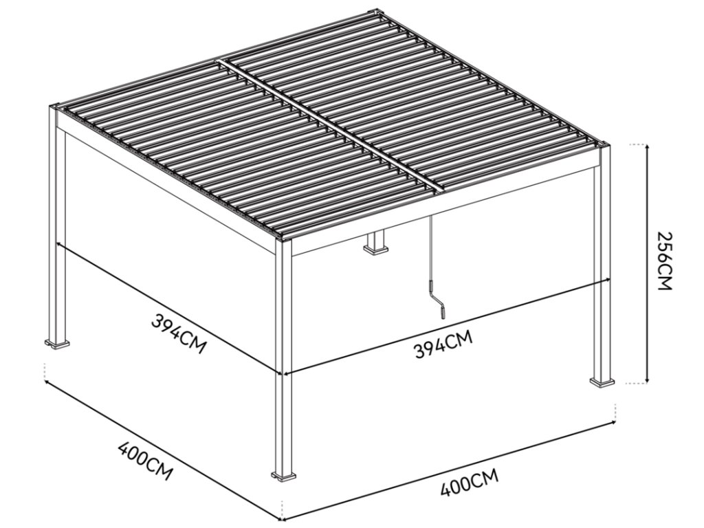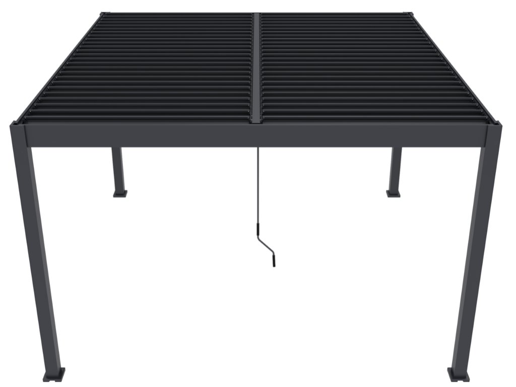 Lamely lze ovládat jednoduše manuálně pomocí kličky. Ta je navržena tak, abyste lamely mohli snadno otočit do požadované polohy a aby při otáčení lamel nedocházelo k poškrábání konstrukce pergoly. Zároveň je klička na konstrukci umístěna tak, aby při doplnění pergoly o zástěny či panely nebránila ve snadné manipulaci s těmito doplňky. Kličku můžete jednoduše sundat.