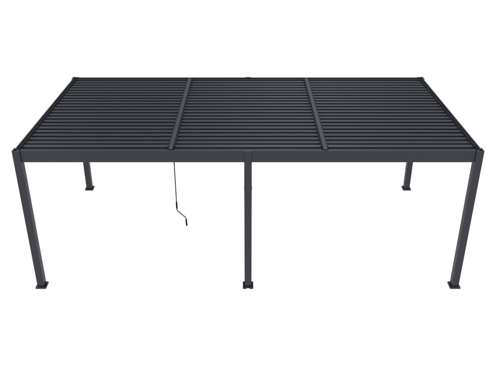 Lamely jsou rozděleny na 3 zóny a každou tuto část je možné ovládat zvlášť. 69 nastavitelných otočných lamel Vás ochrání nejen před sluncem, ale i před deštěm. Lamely lze otáčet od 0°, kdy docílíte úplně uzavřené střechy až do 135°, díky čemuž získáte skvělou mobilitu a možnost zastínit slunce z jakékoliv strany.