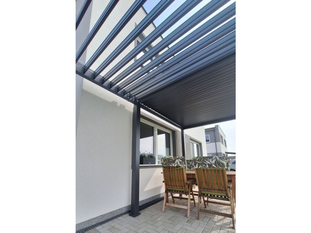 S bioklimatickou pergolou si můžete užívat maximum slunečních paprsků, zároveň se můžete proti těmto paprskům i chránit správným nastavením lamel. Pergola též umožňuje snadnou ventilaci prostoru a naopak dokonalý přístřešek v případě deště.