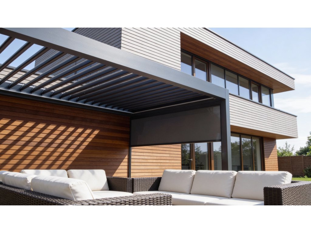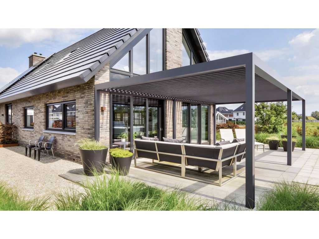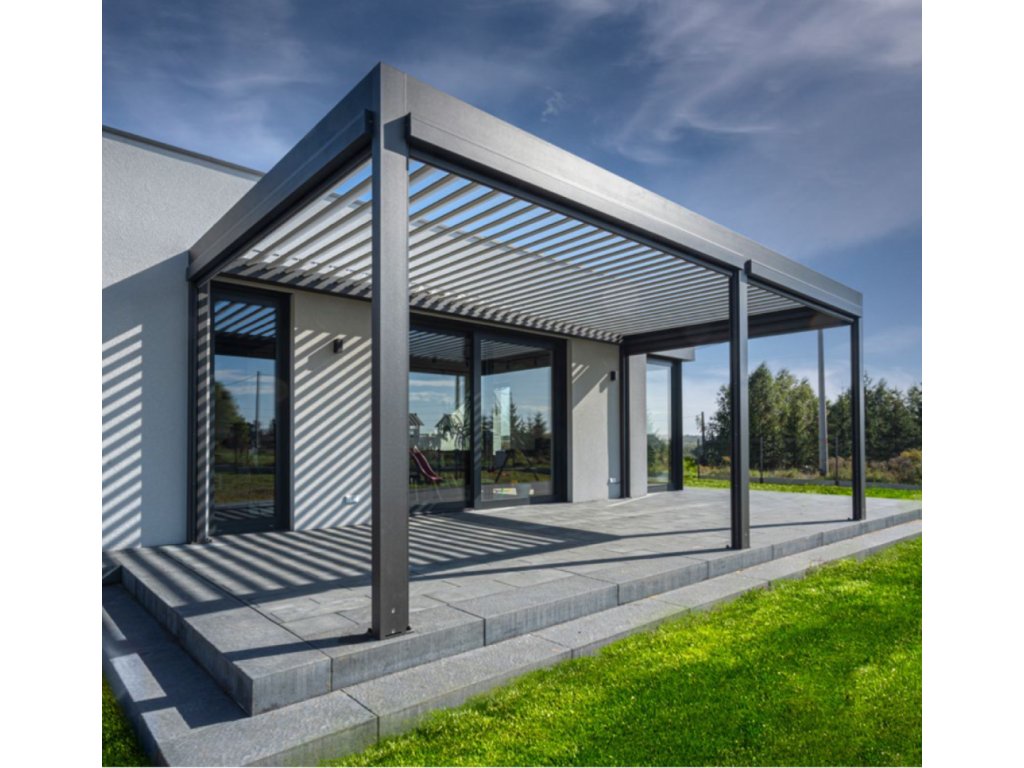 Elektrické ovládání je nenápadně zabudováno přímo do konstrukce a lze jej ovládat dálkově nebo pomocí aplikace v mobilu. Pro ještě větší pohodlí můžete pergolu vybavit senzory, které reagují na vítr, déšť nebo sluneční záření.