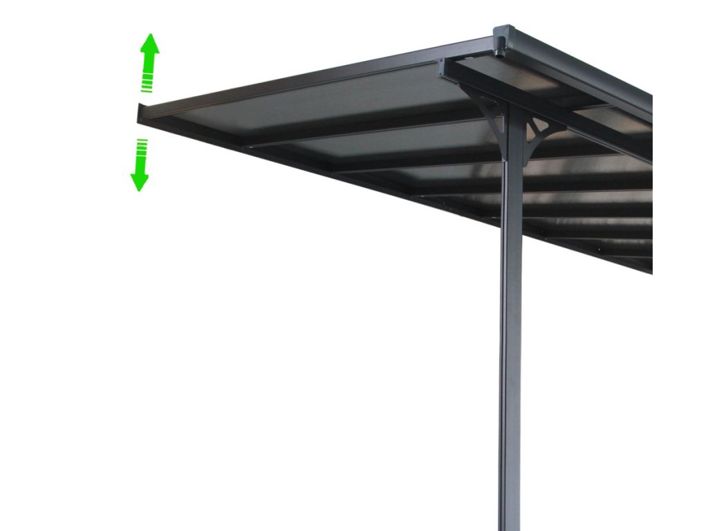 Stabilní a robustní konstrukce z hliníkových profilů a 6mm silného polykarbonátu se 100% UV ochranou.