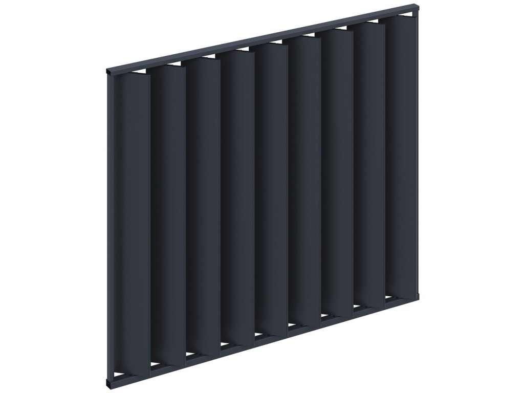 Velmi pevná a stabilní konstrukce a lamely v antracitové barvě RAL 7016. Stěna je vyrobena z vysoce kvalitního hliníku, který je ošetřen práškovou barvou, což zaručuje odolnost vůči povětrnostním vlivům.