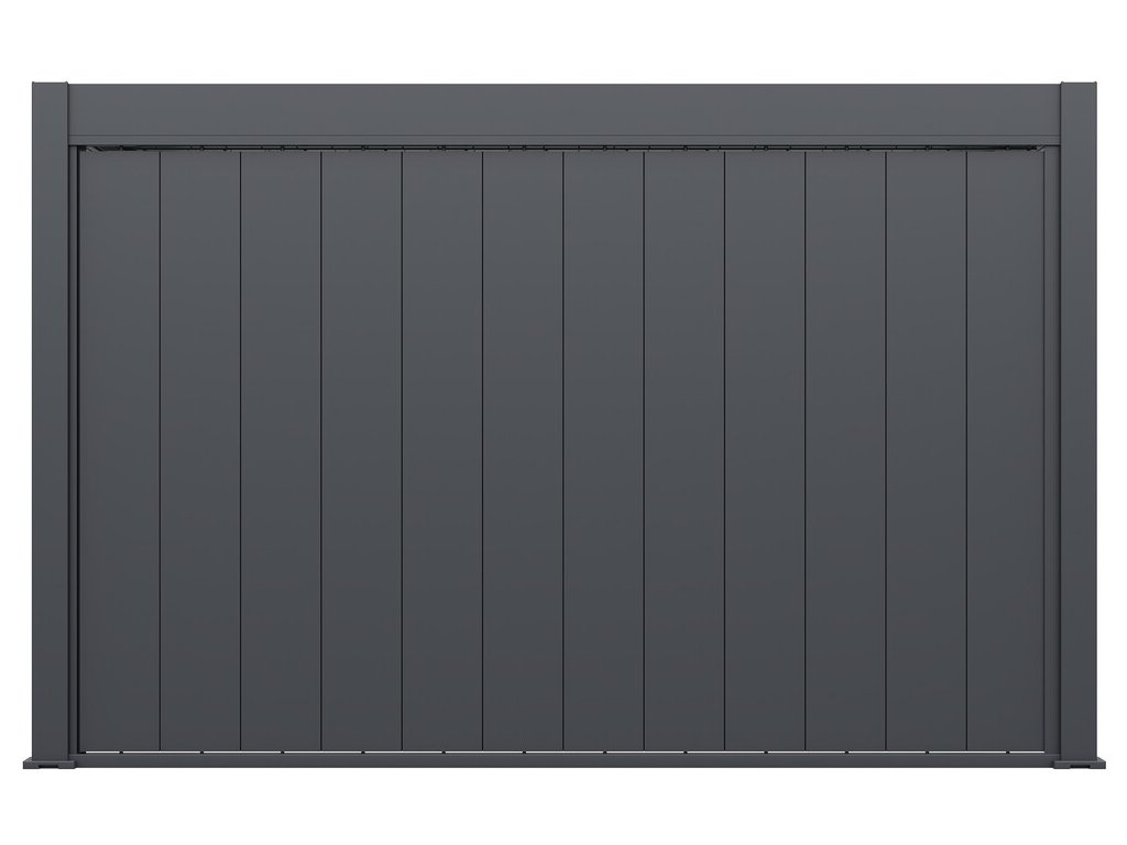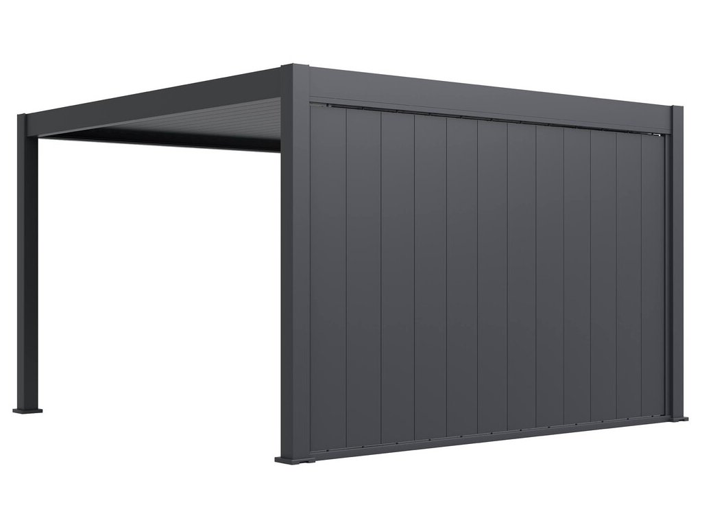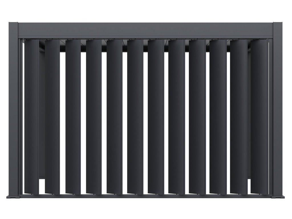 Pro maximální využití bioklimatických pergol nabízíme také příslušenství v podobě stěny s vertikálními sklápěcími lamelami pro zastínění bioklimatické pergoly a získání většího soukromí.